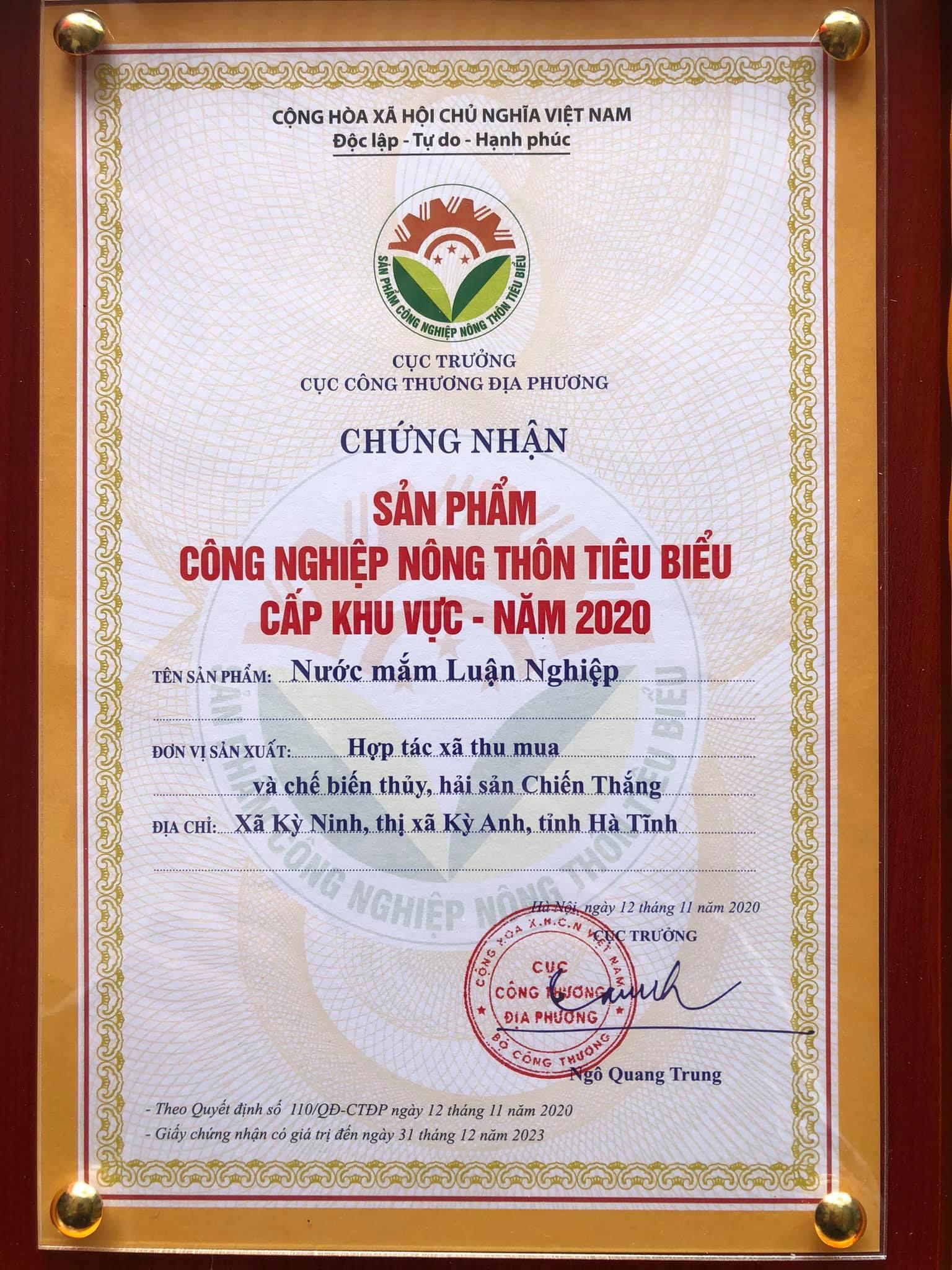 Mỗi sản phẩm mắm Luận Nghiệp được chăm sóc và kiểm tra kỹ càng , được đăng ký và kiểm định của cơ quan quản lý ATVSTP . ở Nước Mắm Luận Nghiệp không chỉ có vị cá và muối còn có cái nắng cái gió và giọt mồ hôi của người làm nước mắm , là sự phát huy và bảo tồn các giá trị truyền thống ông cha ta để lại .